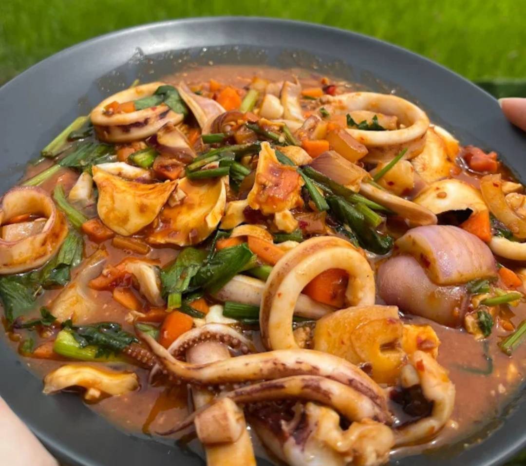 ประเภทอาหาร ยำรวม ปลาหมึกผัก สะเต็ก |