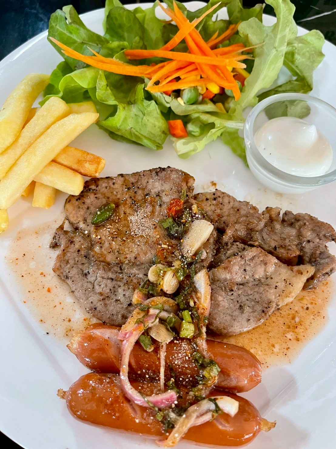 ประเภทอาหาร สามชั้นคั่วเกลือ คอหมูย่าง เต้าหู้ไข่ทรงเครื่อง ่ลาบหมู ลาบไก่ มาม่าผัดขี้เมา ยำมาม่า เมี่ยงหมูสามชั้น ปีกไก่ทอด สามชั้นทอดใบมะกรูด หมูมะนาว ข้าวผัดหมู ไก่ราดซอสครีมมะนาว |