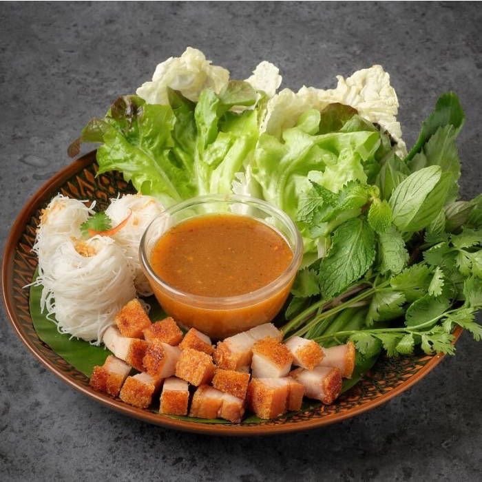 ประเภทอาหาร 1.หมูกรอบจิ้มแจ่ว 2.หมูกรอบซอสสุกี้ 3.บั๋นฮอย (ชุดเมี่ยงหมูสามชั้น) 4.บั๋นฮอย (ชุดเมี่ยงหมูกรอบ) |