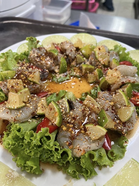 ประเภทอาหาร ปลากะพงนึ่งซีอิ้ว หมูกรอบผัดกะปิ ปีกไก่ทอด ปลากะพงทอดน้ำปลา กุ้งมะนาว ไข่ตุ๋นหม้อไฟ |