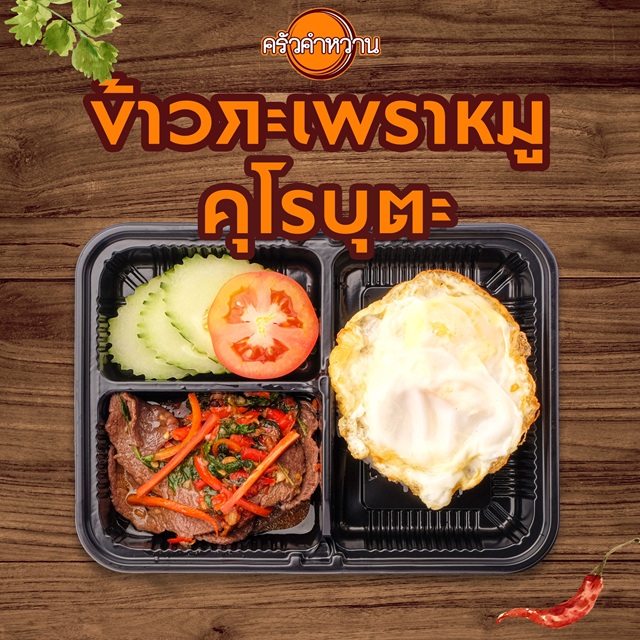 ประเภทอาหาร ข้าวกระเพราหมูคุโรบุตะ+ไข่ดาว , หมูหลบแดด , ข้าวไก่อบ , ปีกไก่ทอดน้ำปลา |