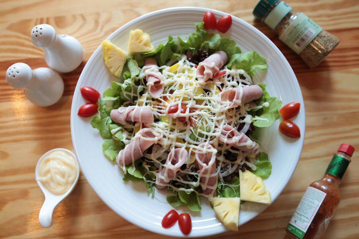 สลัดทูน่า สลัดปูอัด สลัดผัก ไส้กรอกทอด |