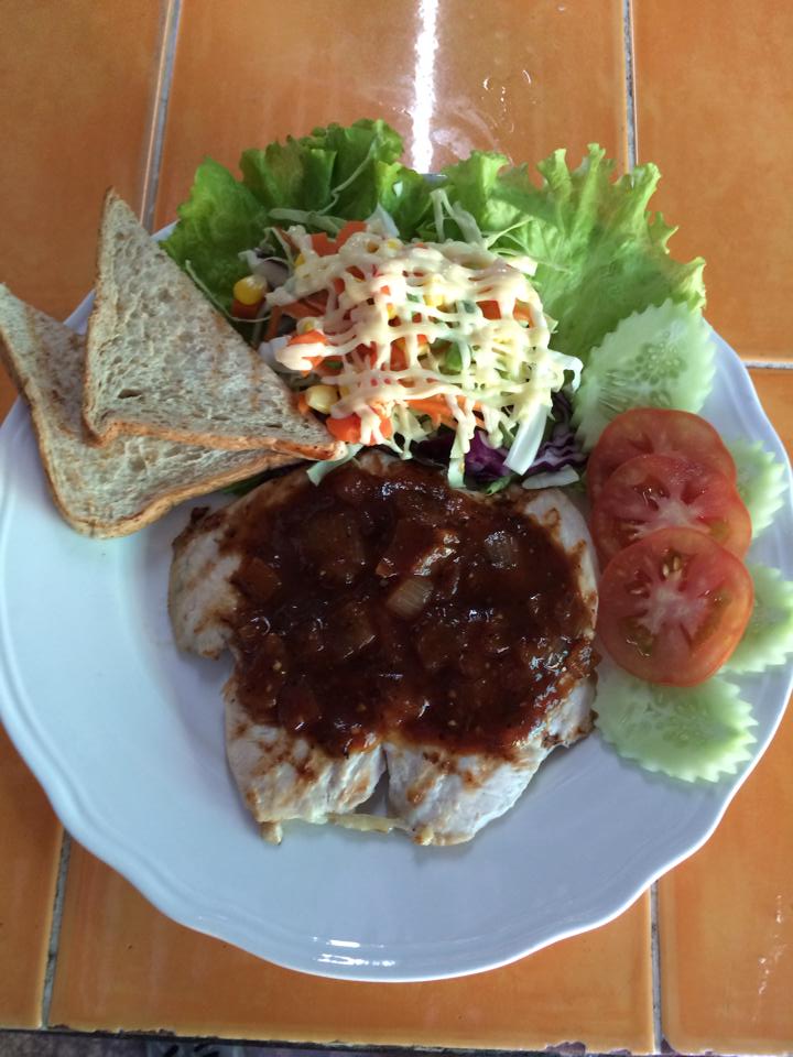 ประเภทอาหาร เบอร์เกอร์หมูคุโรบุตะ,ข้าวไก่เผ็ด,ข้าวสเต๊กปลาลุยสวน,ไก่ย่าง,ข้าวปลากะพงซอสน้ำปลา,ข้าวปลากะพงยำมะม่วง,ข้าวไก่กรอบ,โกลเด้นฟิช |