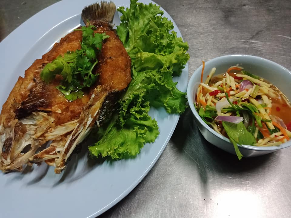 ประเภทอาหาร ข้าวคอหมูจิ้มแจ่ว แกงคั่วกระดูกหมูคนคอน เนื้อทอดพริกไทยดำ ต้มยำปลากระพง คอหมูย่าง ปอเปี๊ยะกุ้งทอด ฉุ่ฉี่ปลาเซลม่อน |