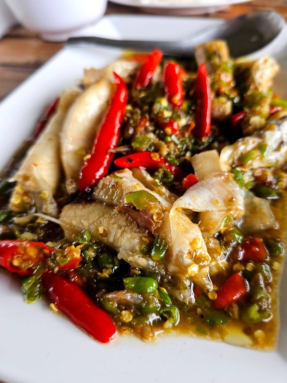 ประเภทอาหาร ต้มยำปลากพง หมูแดดเดียว กะเพราปลากะพง |