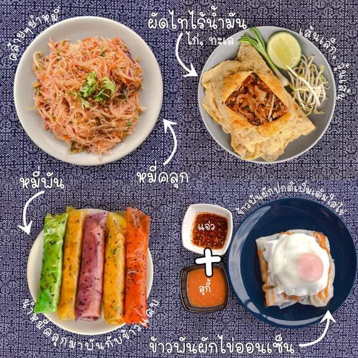 ประเภทอาหาร ข้าวพันผักไข่ออนเซ็น ไข่ม้วน ผัดไทยไร้น้ำมัน หมี่คลุก ข้าวพันผัก แฮมเห็ด ฮาวาเฮียน |