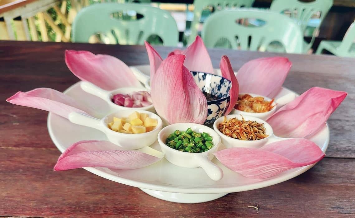 วัตถุดิบที่รับรองตนเอง ผักขจร มะม่วง ชะพลู พริกขี้หนู มะนาว |